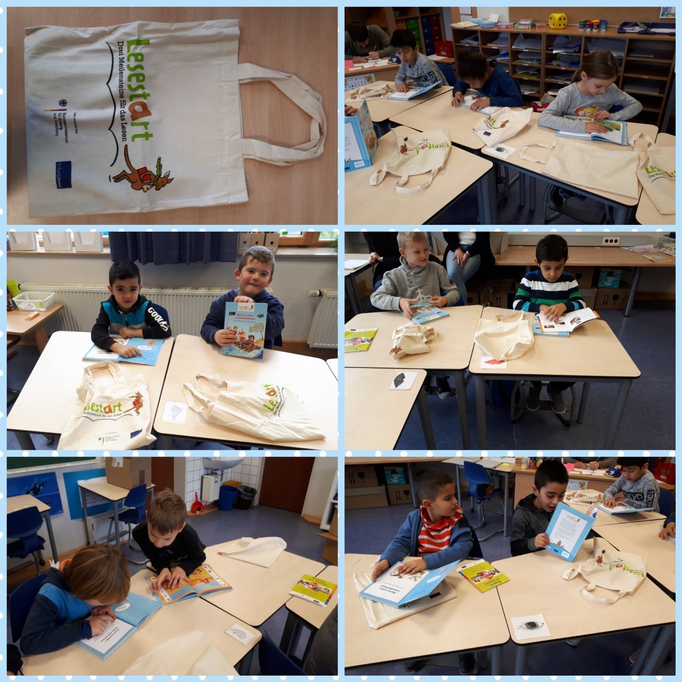 Die Kinder der Klasse 1b freuten sich riesig über die Lesestarttaschen. Jedes Kind aus dem 1. Schuljahr bekam es ein spannendes Buch geschenkt.