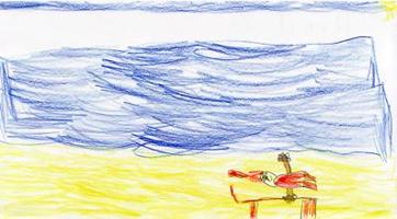 liegt faul in der Sonne, baut Burgen aus Sand.