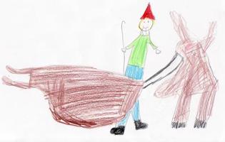 Zieht schnell seinem Rentier das Zaumzeug noch aus.
